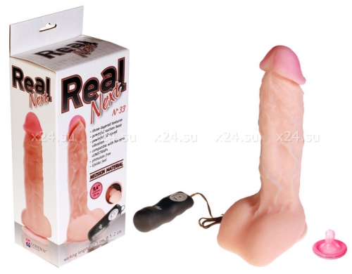 Реалистичный большой фаллос Real Next 9,4'' № 33 (вторая кожа, 12 режимов)