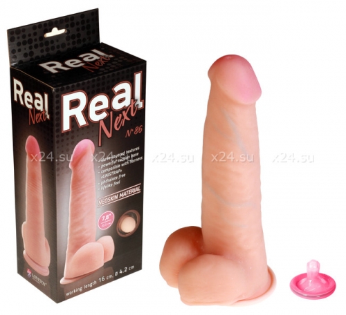 Отличный реалистик Real Next 7,8'' №86 понравится многим дамам, он умеренной длины (его "рабочая" длина, т.е. до мошонки, составляет 16,5 см) и довольно крупный в диаметре. У головки его диаметр составляет 3,7 см, а ближе к яичкам он расширяется. В основании фаллоимитатора имеется мощная присоска, которая позволяет закреплять его на любой твердой гладкой поверхности. Это может быть и стенка в ванной комнате, и сиденье стула. Таким образом, Вы сможете менять позы.