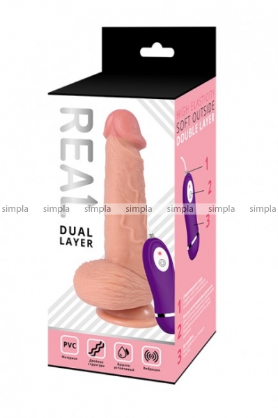 Реалистичный фаллос на присоске с вибрацией REAL Dual Layer (10 режимов)