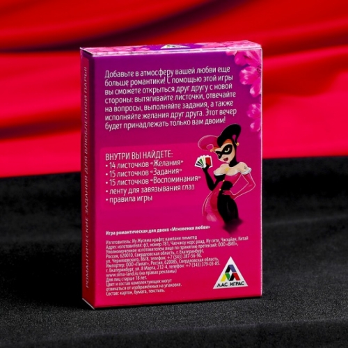 Добавьте в атмосферу вашей любви еще больше романтики. Вытягивайте карточки, отвечайте на вопросы, выполняйте задания и воплощайте в жизнь желания друг друга. Этот вечер будет принадлежать только вам двоим.
