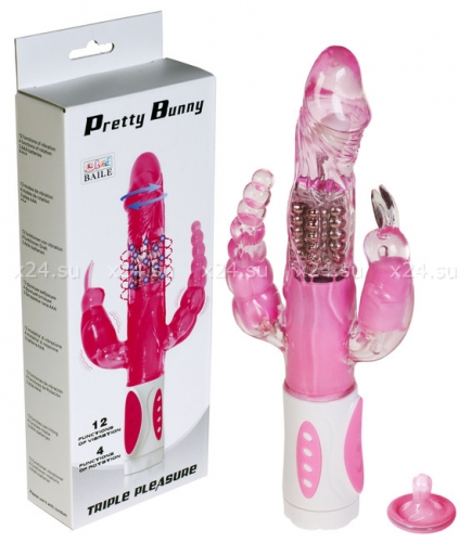 Ротационный вибратор с анальным и клиторальным стимулятором Pretty Bunny