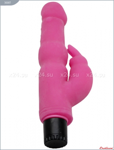 Розовый вибратор ультраскин с клиторальным стимулятором