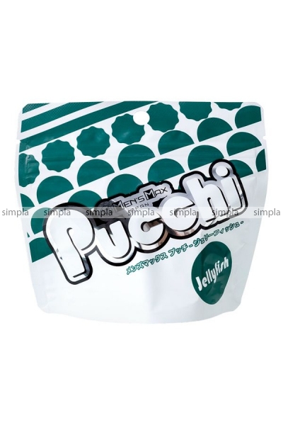 Обновленный карманный мастурбатор MensMax Pucchi Jellyfish имеет увеличенный размер, улучшенную эластичность, более четкий рельеф, и выделяет еще больше смазки – берите его с собой куда угодно. Все что вам нужно – это мастурбатор и немного воды. Самоувлажняющийся мастурбатор невероятно удобен в командировках, путешествиях и в повседневной жизни. Благодаря запатентованной японской технологии, инновационный материал +Wetch при взаимодействии с водой выделяет густой гель, усиливающий скольжение. Даже во время длительного массажа пениса гель не скатывается и не высыхает. Достаточно добавить немного воды, чтобы испытать полный спектр эмоций от интимного удовольствия. Многоразовая непрозрачная упаковка с замочком-клапаном служит мешочком для хранения. Упругий, но эластичный материал подходит для мужчин с любыми размерами пениса. Материал игрушки тактильно приятный и быстро принимает температуру тела. Чтобы усилить ощущения, добавьте теплую воду и наслаждайтесь температурными играми. MensMax Pucchi производят на новейшем оборудовании в Японии, что гарантирует качество и безопасность использования. Мастурбатор Pucchi Jellyfish представляет собой мягкую трехъярусную елочку с одним отверстием. Внешняя сторона гладкая и нежная, а внутри комбинированный рельеф из полусфер, выпуклостей и ребер, которые обеспечивают дополнительный массаж пениса, и особенно ярко ощущаются при стимуляции головки. Чем глубже проникновение, тем ощутимее стимуляция. Инструкция: Достаньте мастурбатор из упаковки и налейте в него немного воды (чайную ложку). Старайтесь не намочить внешнюю сторону игрушки, чтобы смазка не мешала вам в процессе. Распределите образовавшийся гель по внутренней поверхности девайса. Начните с массажа головки, так вы сможете получить максимальное наслаждение от рельефа и настроиться на нужный лад. Совершайте вращательные движения по часовой стрелке или против нее. Для предварительных ласк партнерши выверните мастурбатор наизнанку и наденьте на пальцы. После игр промойте Pucchi водой или средством для очистки игрушек. Когда израсходуете смазку мастурбатора, выбирайте лубриканты на водной основе.