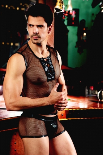 Костюм стриптизера Maxx от Candy Boy показывает каждое движение мускул! Комплект выполнен из крупной эластичной сетки со вставками wetlook. Майка с имитацией шнуровки подчеркивает ширину плеч. Трусы-боксеры обтягивают бедра и эротично демонстрируют ягодицы.