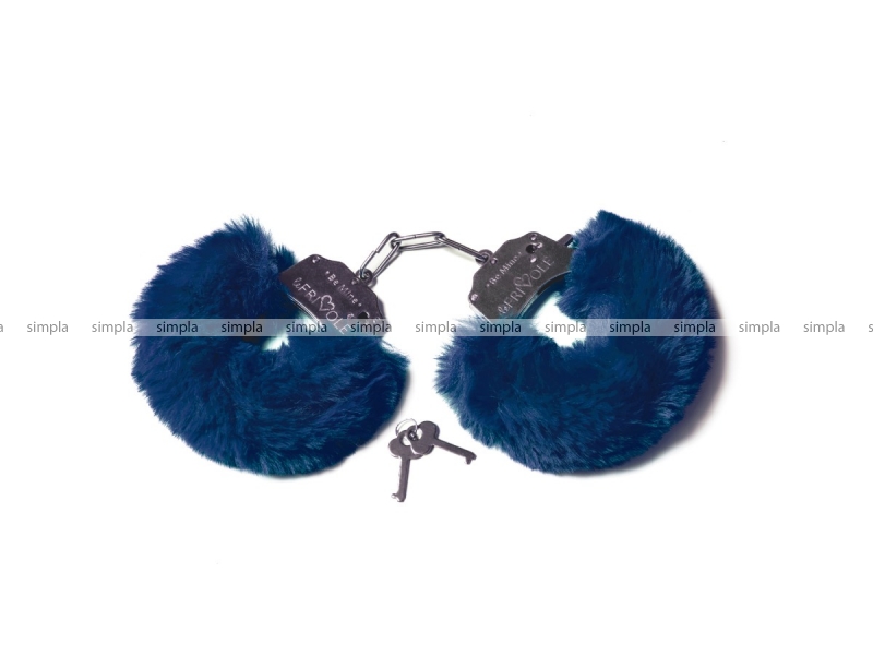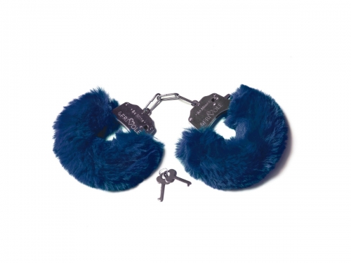 Шикарные наручники с пушистым мехом синего цвета Be Mine