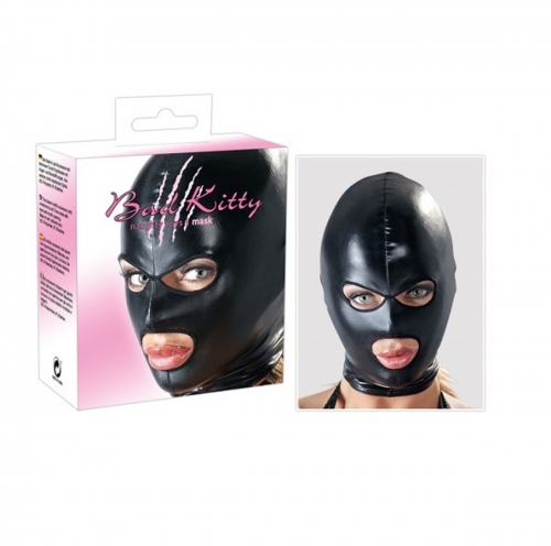 Облегающая маска-шлем с дырочками для рта и глаз. Сделан шлем из эластичного дышащего материала, имитирующего винил.