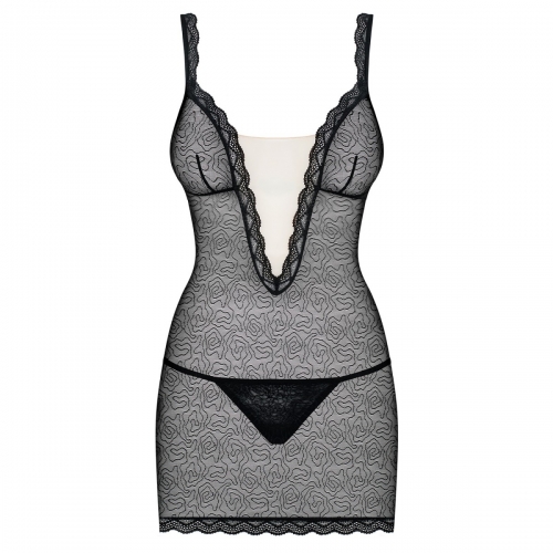 Женственая прозрачная сорочка с орнаментом от европейского производителя Obsessive. Регулируемые бретели, бежевая сетчатая вставка в зоне декольте. Сексуальный глубокий вырез, окантована красивым кружевом. Стринги включены в комплект. Красивые и эластичные ткани.