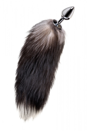 Средняя анальная втулка с натуральным хвостом черно-бурой лисы Metal by TOYFA