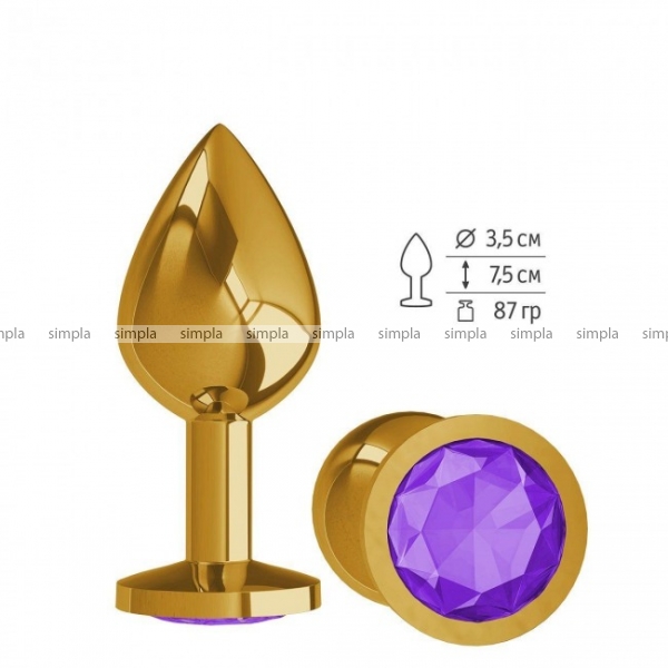 Средняя золотая пробочка с фиолетовым круглым кристаллом