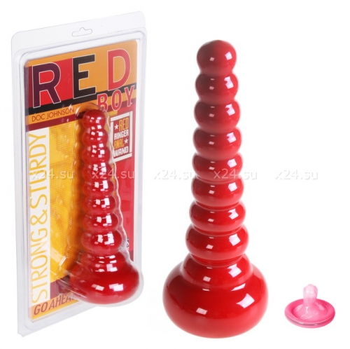 Длинный толстый ребристый анальный стимулятор из коллекции RED BOY от американской компании Doc Johnson.