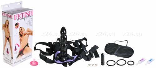 Pipedream Fetish Fantasy Series Vibrating Strap-On Set – страпон с креплением и многоскоростным виброэлементом. Фаллос крепится при помощи регулируемых ремешков. Ствол насадки имеет рельефную форму для более ярких и насыщенных ощущений. Вы можете использовать любой другой страпон из серии Fetish Fantasy, закрепив его при помощи кольца. В комплект также входит сатиновая маска.