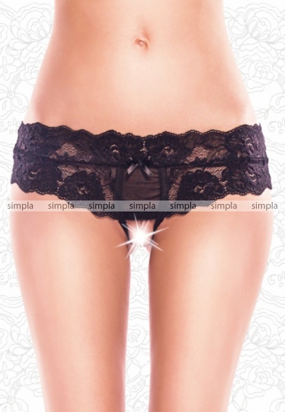 Трусики-стринги с доступом, изготовлены из приятного полупрозрачного кружевного материала, отделаны цветочным узором и бантиками. Кружево может отличаться от представленного.