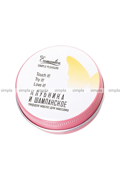 Коллекция косметики для массажа Eromantica Simple Pleasure — это натуральные массажные масла в удобном формате. С ними ты можешь создавать романтическую атмосферу и наслаждаться роскошным уходом в любом месте и в любое время. Твердое масло для массажа Eromantica «Клубника и шампанское» — релакс и уход в удобном формате. Как использовать: возьми плитку и проведи по телу мягкими массирующими движениями. Натуральный воск оставит на теле ароматный слой для мягкого и чувственного скольжения ваших рук. Остаток плитки убери обратно в коробку для следующего массажа.