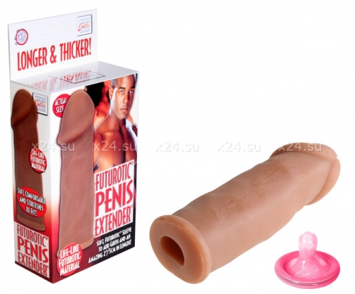 California Exotic Futurotic Penis Extender – удлиняющая насадка на пенис сделана из супер эластичного и мягкого материала, на ощупь напоминающего человеческую кожу. Увеличенная головка реалистичной формы обеспечит дополнительную стимуляцию стенок влагалища. Поверхность покрыта набухшими венками. Ваш пенис будет длиннее на целых пять сантиметров, что несомненно понравится Вашей партнерше.