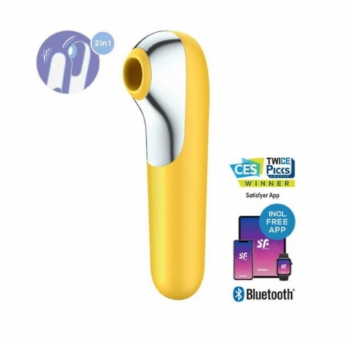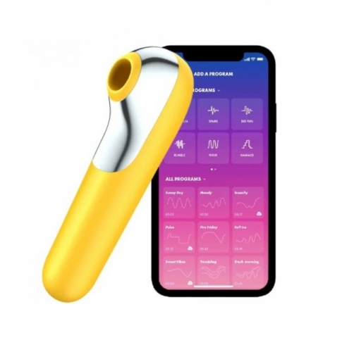Вакуумный вибромассажер Satisfyer DUAL LOVE сочетает в себе функции вибратора и вакуумного стимулятора. Имеет 10 режимов вибрации и 11 режимов вакуумной стимуляции, которые могут работать как вместе, так и раздельно. Работает от аккумулятора и заряжается от магнитного зарядного устройства (идет в комплекте). Вакуумный стимулятор оснащен системой Bluetooth, управление может осуществляться через бесплатное мобильное приложение Satisfyer, либо кнопками на устройстве.