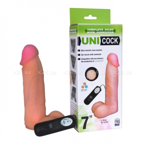 Вибратор с креплением для страпон-трусиков UNICOCK 7'' (12 режимов, вторая кожа)