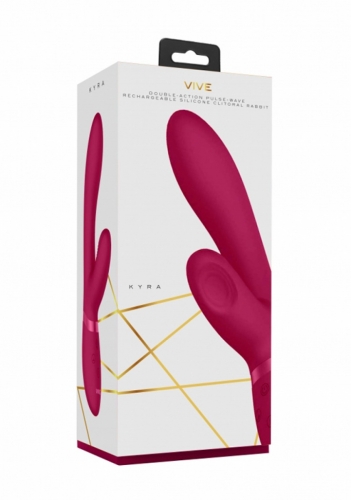 Kyra – импульсный вибромассажер-кролик с функцией «импульсное воздействие» на клиторальном отростке. Он изготовлен из высококачественного, мягкого, нежного на ощупь 100% медицинского силикона с пылеотталкивающими свойствами и прочного, элегантного АБС-пластика. Вибромассажер оснащен инновационными электродвигателем нового поколения F1. Преимущество такого типа двигателя в том, что он делает интенсивную стимуляцию очень мягкой даже при мощном максимальном воздействии. Игрушка имеет два мощный отдельных мотора, каждый из которых обеспечивает 10 функций вибрации, способной достигать 5000 и 7600 оборотов в минуту. Это дает возможность настраивать более чем 100 уникальных комбинаций. Вибромассажер имеет необыкновенную функцию «мгновенный оргазм», при которой нажатие одной кнопки возводит интенсивность вибрации к максимальной точке. Применение Вибромассажер подходит для вагинально-клиторальной стимуляции. Благодаря гибкому отростку с функцией «пульсирующее воздействие» игрушка идеальна для более точечной клиторальной стимуляции. Функция «мгновенный оргазм» дает возможность получения быстрого и/или очень сильного удовольствия. Вибромассажер полностью водонепроницаем, а это значит, что его можно смело использовать в ванной или душе. Вибромассажер заряжается через USB и может быть подключен практически в любом месте. Просто подсоедините идущий в комплекте шнур к совместимому порту компьютера или USB-адаптера (приобретается отдельно), а противоположный конец с магнитной зарядкой к игрушке. Полная зарядка занимает 180 минут, ее достаточно для беспрерывной работы до 60 минут. Для комфортности использования и получения максимально приятных ощущений рекомендуется использовать смазку на водной основе. Хранение Очищать игрушку желательно до и после использования. Можно помыть в теплой воде с мылом или воспользоваться специализированным чистящим средством. Перед хранением вибромассажер необходимо хорошо просушить. Желательно хранить отдельно от других силиконовых изделий.