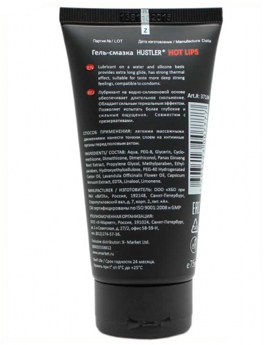Возбуждающая гель-смазка на водно-силиконовой основе HUSTLER HOT LIPS (75 мл)