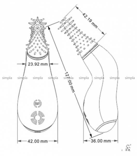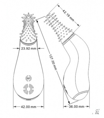 общая длина 13 см, глубина проникновения (длина конуса) 4,4 см, max диаметр конуса 2,1 см, max диаметр стимул-ра 4,4 см