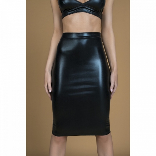 Юбка-карандаш из материала wet look с полупрозрачной сеточкой сзади SM