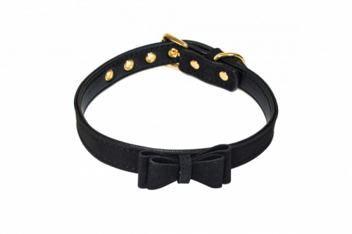 Развлекайтесь и получайте удовольствие от новых ощущений! Прекрасные атрибуты обострят ваши чувства и увеличат страсть. Ошейник из эко замши с бантиком и золотыми элементами смотрится очень красиво и игриво. Данный ошейник подойдет в качестве стильного аксессуара, дополняющего Ваш образ.